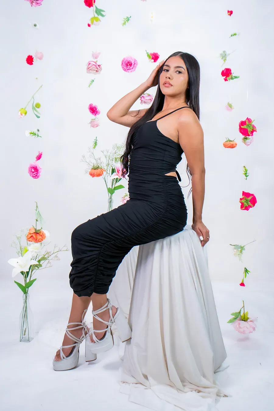 Vestido fabricado en dos telas, tull y suplex. Harán comprimir tu abdomen y el corset en la parte de atrás ajustara el vestido a tu necesidad.