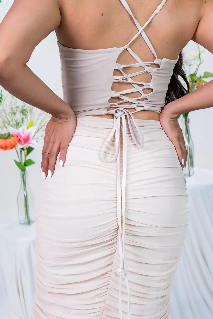 Vestido fabricado en dos telas, tull y suplex. Harán comprimir tu abdomen y el corset en la parte de atrás ajustara el vestido a tu necesidad.